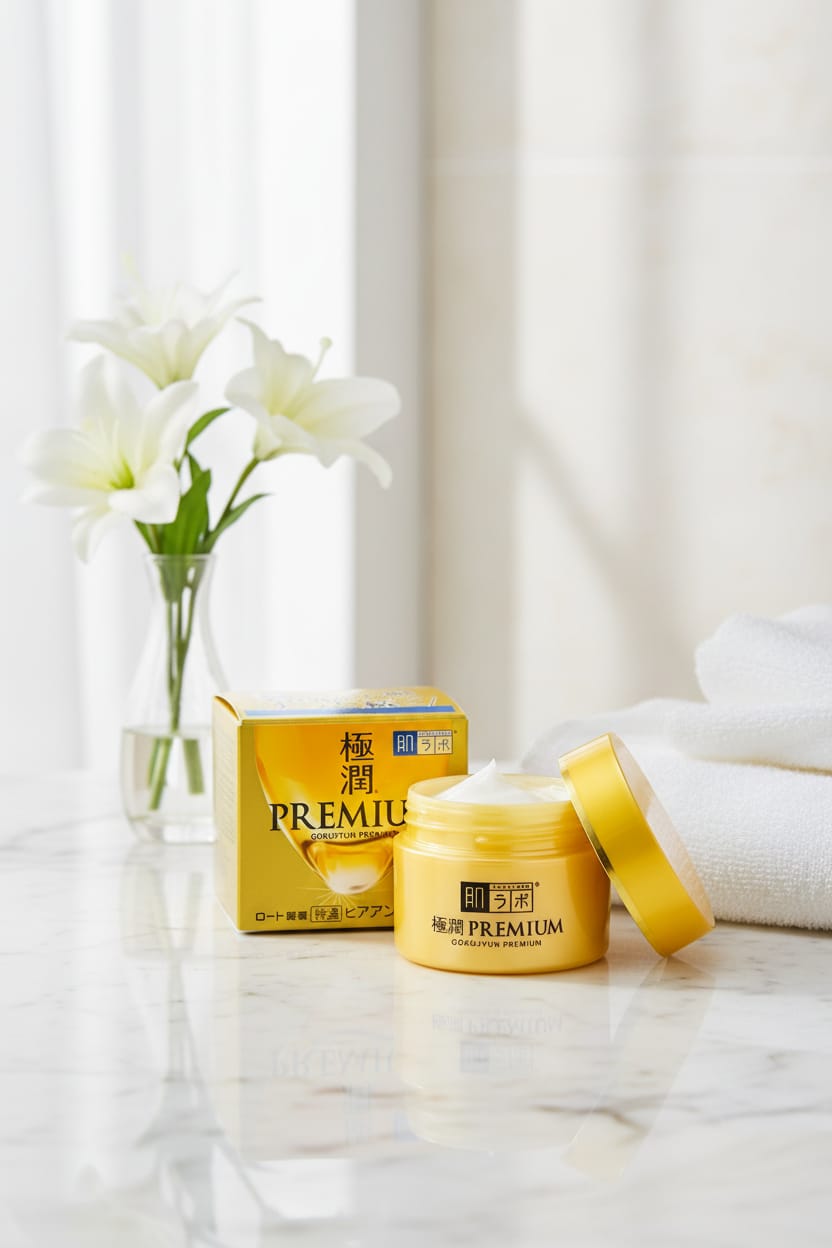 Hada Labo Gokujyun Premium Cream is a Japanese facial cream featuring 7 kinds of hyaluronic acid, including encapsulated low molecular hyaluronic acid, to provide a highly moisturizing effect that seals moisture for a long time.